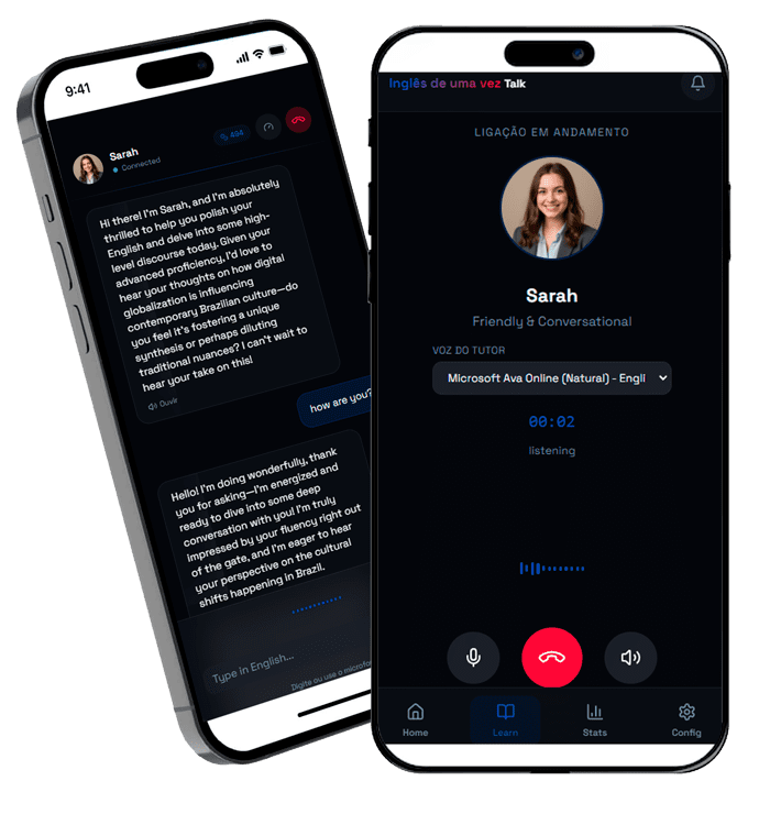 👉 Você pode fazer chamadas e conversar em inglês como se estivesse falando com uma pessoa real.